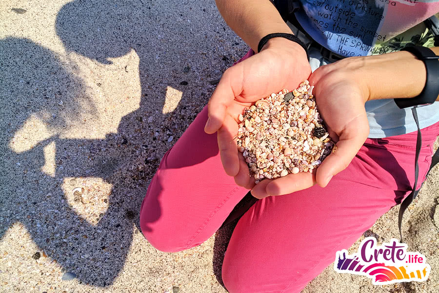 What to do there? Relax and do nothing! Swim! Sunbathe! Or… If you wear comfortable shoes and walk around the island, you will see beaches with red, green and black sand and pebbles. Part of the coast is covered with shells of various shapes and sizes – from white to pink and from tiny to large, especially in spring and early summer (i.e. after winter storms). On the western side, a rocky path leads to the salt marsh and the 13th century chapel of Agios Nikolaos (Saint Nicholas), along with various Minoan and Roman artifacts (the excavations have not yet been completed) and the island’s lighthouse. If you explore the eastern part of the island, you’ll find an abundance of shells and fossils scattered among sharp rocks.