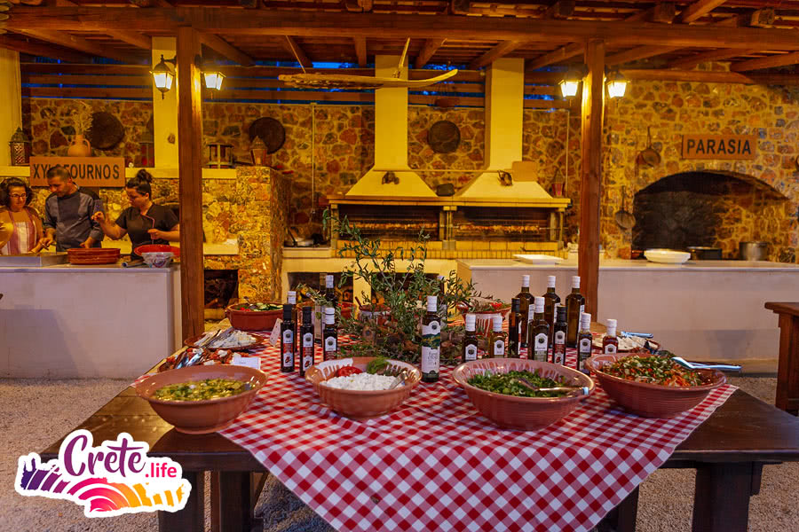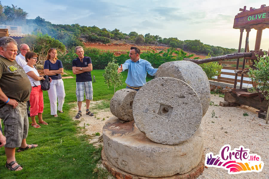 The Cretan Night at Lyrakis begins with a visit to an authentic olive oil factory. You will learn the history of olive oil production from ancient times to the present day. You will see the ancient tools and presses as well as the modern high-tech factory.