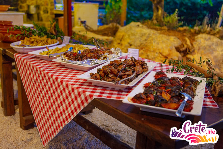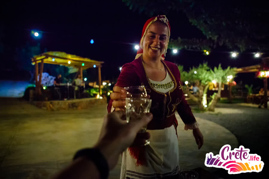 A Greek Night in Crete or Cretan Night always includes a costume show and local cuisine. Traditional costumes, dancing, roast lamb, beef, pork and homemade wine – you can’t miss it! However, there is a very important point. This tour does not replicate a Cretan folklore night in other villages. The Lyrakis Olive Oil Factory has decided to organise a more varied programme and not only to delight the guests with a feast, live Cretan music, songs, dances and delicacies, but also to diversify their Greek Night with informative and educational part. This time you are visiting a true Hellenic family, a Greek family that has been in the olive industry for three generations and knows a lot about both delicious and healthy food and entertainment. The tour will certainly be very interesting!