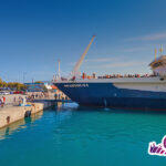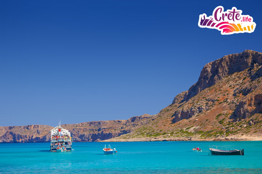 The ship will start from the port of Kissamos and travel around a large peninsula. In front of you, you will see high cliffs and caves; you will also see secluded beaches and, of course, the blue sea. During the tour, you will have the opportunity to see a large sea cave that is believed to have once been used as a shipyard. Near the end of the peninsula, you will also see an interesting geological phenomenon: Crete is still moving quite a lot! The western part of the island is rising out of the sea, while the eastern part is sinking under water. You can see this in the lines on the steep cliffs. You can also see the pirate island, as it’s quite close and you can spot it from the ship as it passes next to it. When the boat trip ends, you will arrive at Balos Lagoon. There, you will have lots of time to swim, sunbathe, walk in the shallow waters of the lagoon and on the nearby beaches.