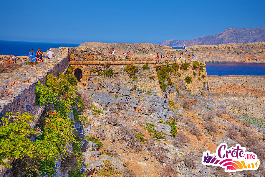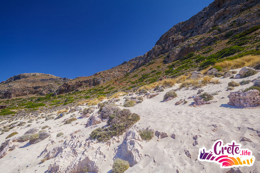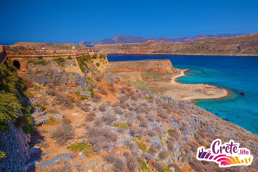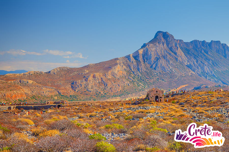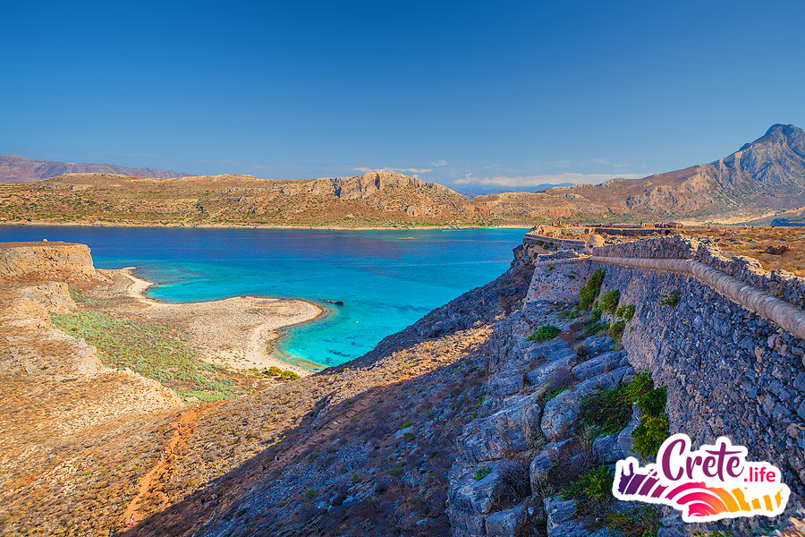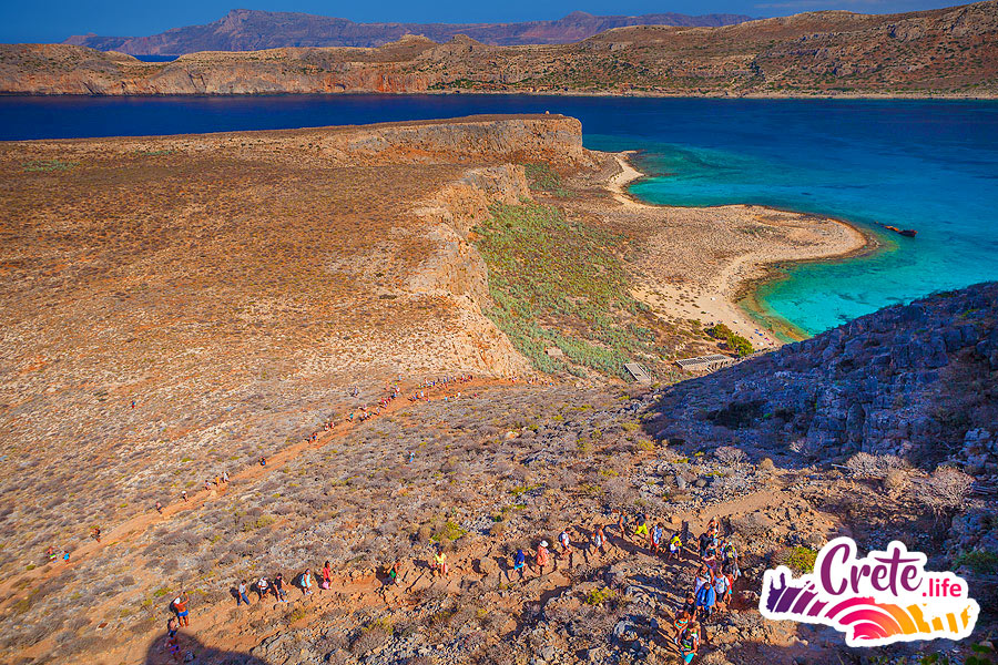 There are no obligatory long walks. On the island of Gramvousa you can climb up a stony path to the fortress at an altitude of 140 meters above sea level. If you don’t want to go up to the fortress and prefer the view of the confluence of the three seas from the top of the island to swimming in the sea, you can stay on the beach all the time.