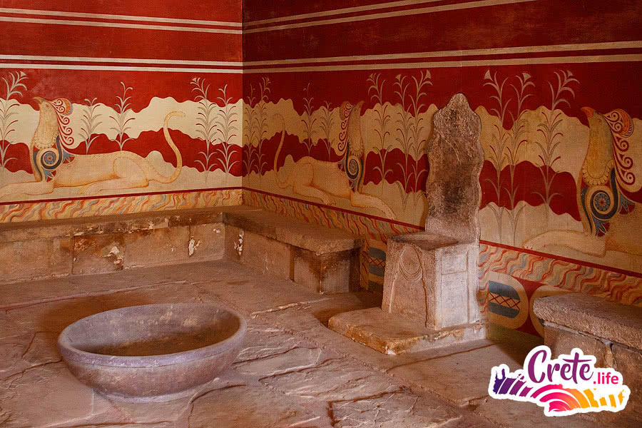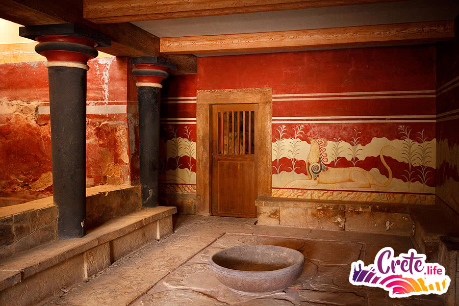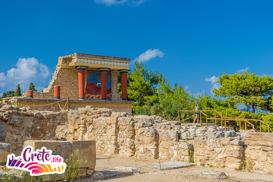 Your guide will tell you the story of when and how the Palace of Knossos was built, when and how it was supposedly destroyed and when and how it was discovered and reconstructed. As a brief introduction, it’s important to say that Knossos Palace was the largest of the four Minoan palaces on the island of Crete. Imagine this: it was a really complex multi-level structure with corridors connecting countless rooms and courts. It served as the centre for everything from royal quarters to the conduct of administrative, economic and religious affairs. During the tour you will see many interesting places such as the royal apartments, throne room, storerooms and of course you will see the decorations with colourful frescoes. Imagine that a civilization of that time could have built something so large-scale and well-organised (and that was about 4000 years ago!).