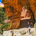 The next part of the gorge has one of the most impressive sections. It is called the “Stenada” (“narrow area”) – and for a reason. Here, the walls of the gorge are only 1.6 metres apart and 300 metres high. This means that here you can touch both sides of the canyon at the same time! Not far from the exit of the Gorge of Imbros is another beautiful spot that will definitely not go unnoticed – it is a large stone arch. A great place for beautiful photos!