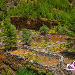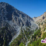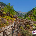 Leaving the bus in the mountains, you will walk to the place called Xyloskalo or “wooden stairs”. From here, at 1250 meters above sea level, you start walking through the Samaragia gorge. You won’t miss the stunning view of the gorge from the entrance – it’s absolutely breathtaking and perfect for snapping some memorable photos!