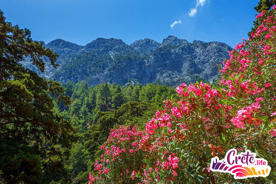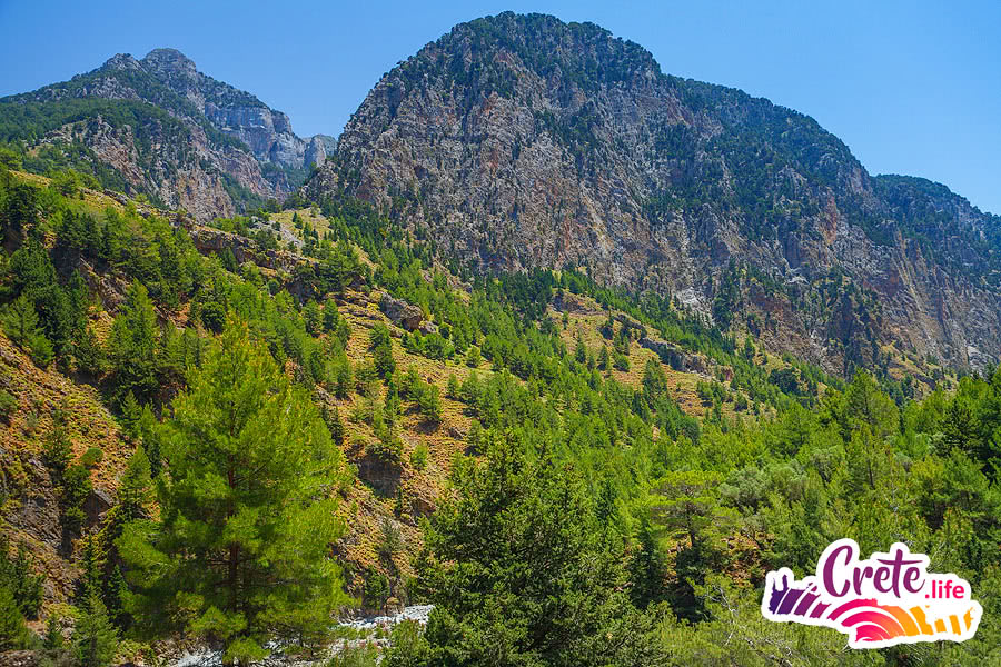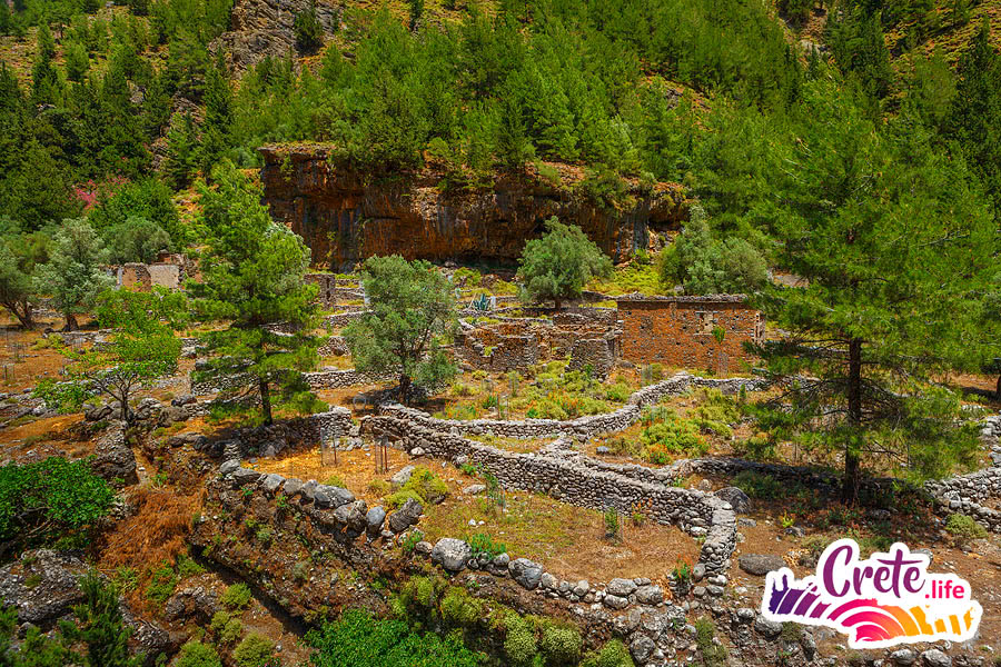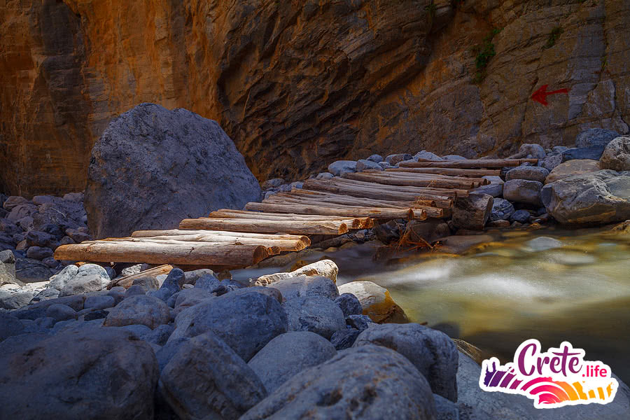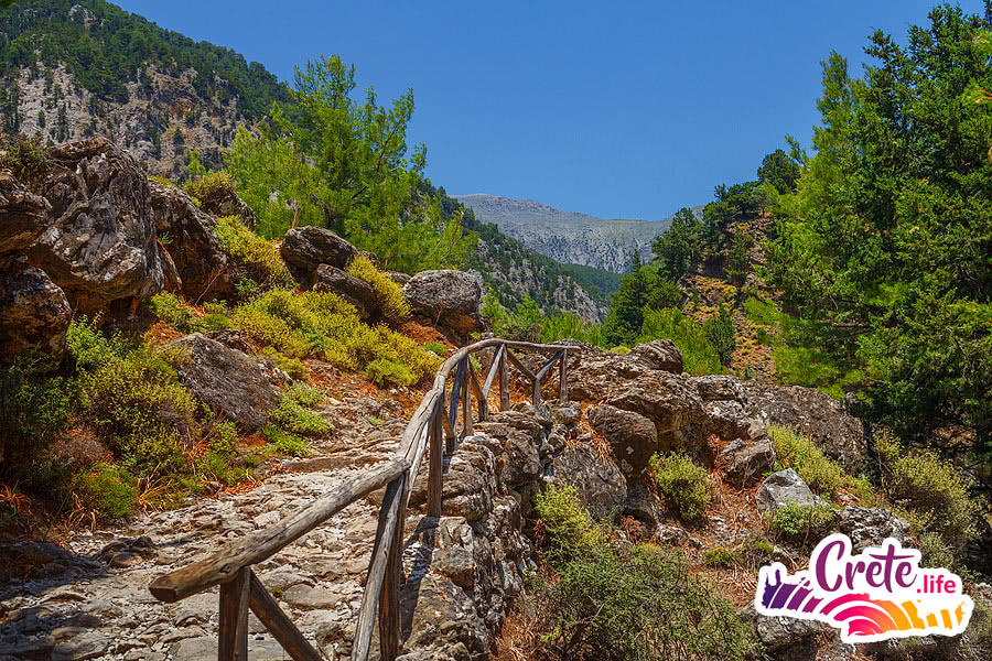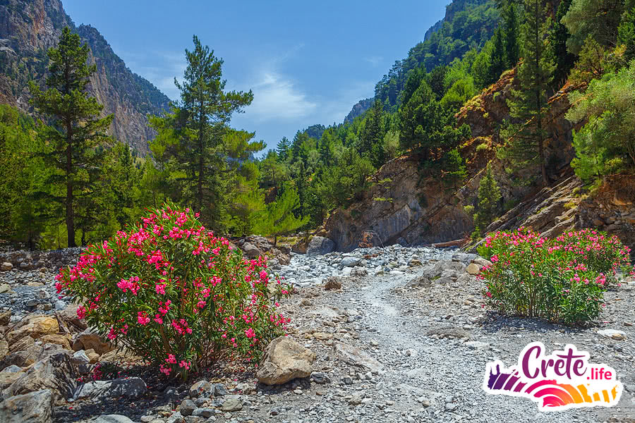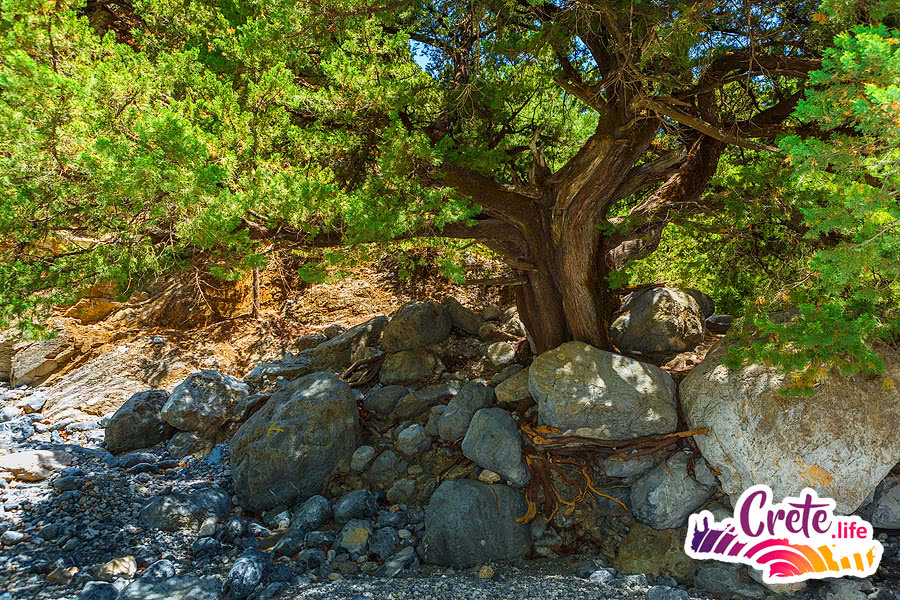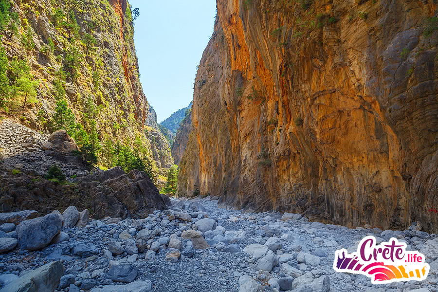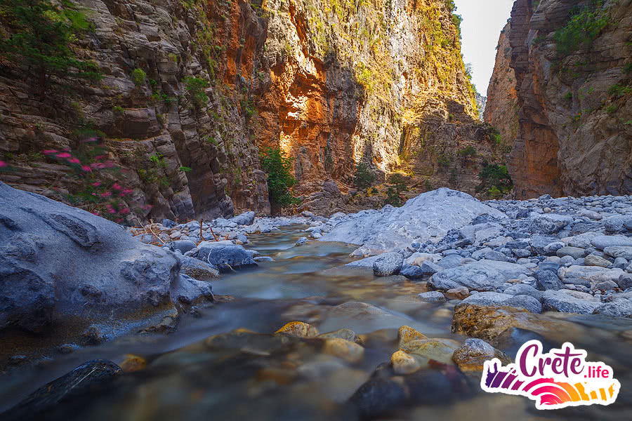 Along the way, you’ll find several rest stops with refreshing spring water and shades. Note the small river (especially in spring) that meanders in and out of sight, adding a touch of serenity to your journey, and when you reach the sighn with a 4-kilometer mark, don’t miss the opportunity to visit the charming Agios Nikolaos (Saint Nicholas) ancient chapel dedicated to the saint. And keep your eyes on the rock walls! You may be lucky enough to see the famous Cretan mountain goats Kri-Kri!