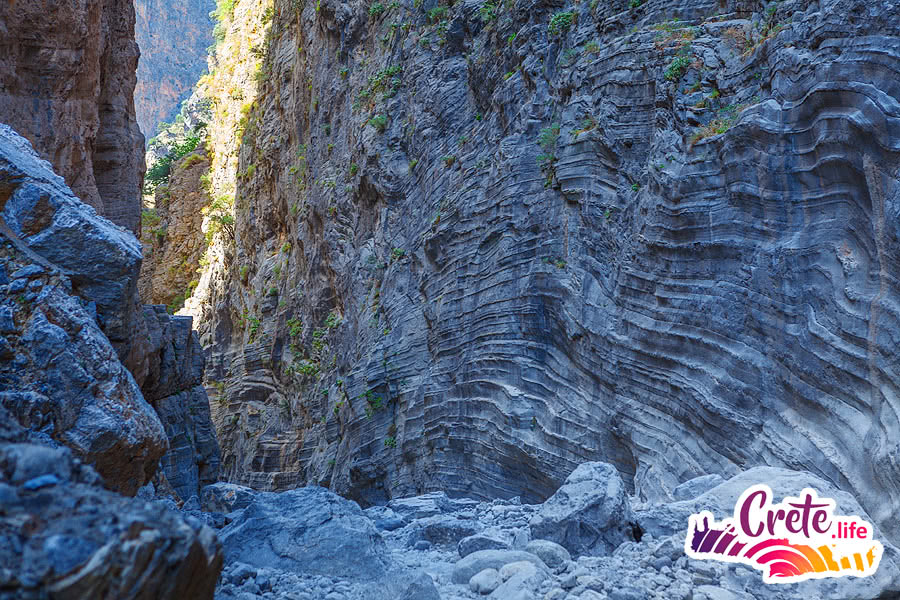 Towards the end of your trip through the Samaria Gorge, you will see one of its most interesting features: the famous “Portes” or “Iron Gates”. These imposing rock formations mark the narrowest part of the gorge: here it is only 3 meters wide and reaches a height of 350 meters. It always makes an impression!