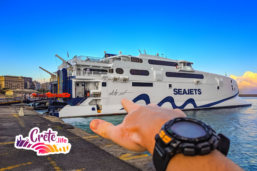 In 2025 you will only be able to get from Analipsi to Santorini with organized bus tour by high speed ferries from the main port of our capital. This particular excursion takes place on the high-speed ferries of SeaJets. Depending on the season and day of week we’ve got a several ferries from them, like the SeaJets Power Jet, the Superrunner and a few others. The largest of these ferries can carry up to 1200 passengers, and the trip from Crete to Santorini takes about two hours.