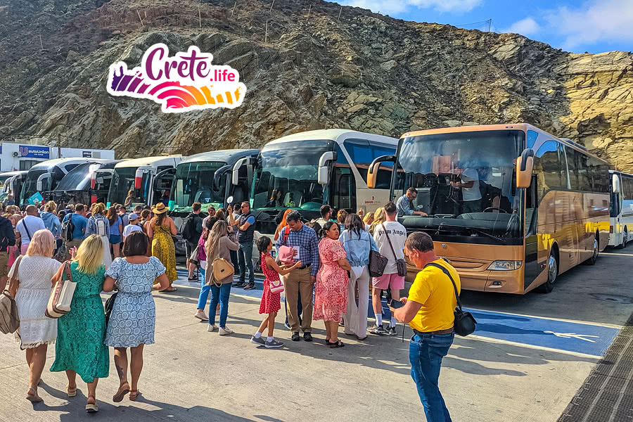 In the morning our staff at the port will give you the bus numbers and during the day your guide will tell you the exact meeting point and pick up time in Santorini. After your tour of Santorini, come to the pick-up point and our bus will take you to the port in time for the departure of the ship. When you disembark in Crete, go to the bus parking lot (to the right of the pier), board the bus with the correct number and get off at the bus stop near your hotel.