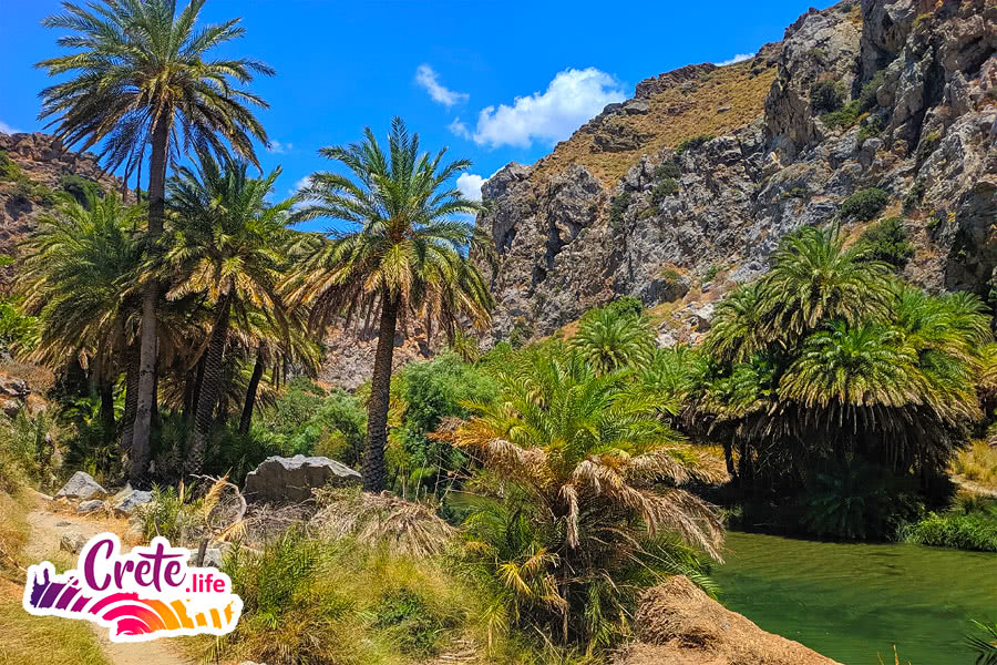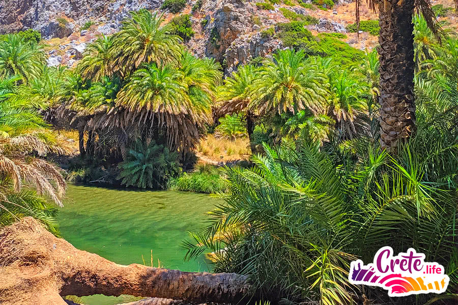 This trip starts in the northeastern part of Crete, where the tour bus will head south to Damnoni beach, famous for its gray sand, turquoise waters and the old fishing village of the same name. This is the coast line of the Libyan Sea. Here a boat will be waiting for our group – the rest of the trip will be by sea. After half an hour on board, everyone will head straight to the palm-fringed Preveli Beach, which is located in one of the neighboring bays.