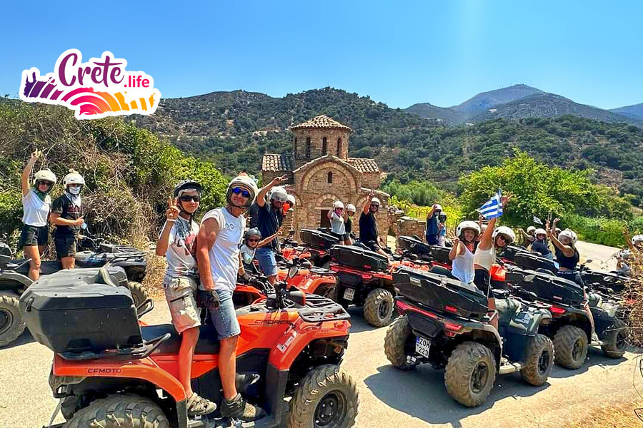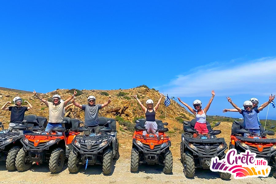 Have you already had a good holiday on the coast by the sea? Take a quad safari trip from Ammoudara and the sea coast to the mountainous regions of Crete! We will pick you up at your hotel and take you on a scenic journey along mountain roads with stunning views of the Cretan Sea and rugged island mountains.